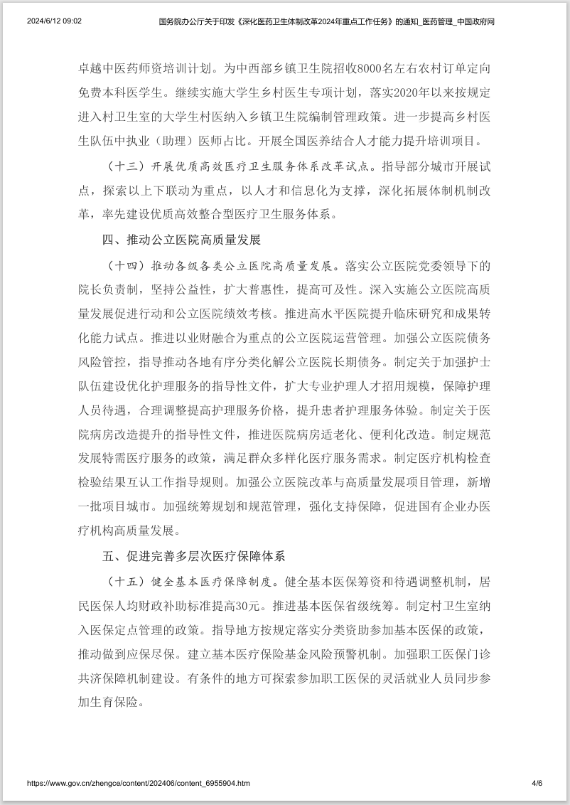 國務(wù)院辦公廳關(guān)于印發(fā)《深化醫(yī)藥衛(wèi)生體制改革 國務(wù)院辦公廳關(guān)于印發(fā)《深化醫(yī)藥衛(wèi)生體制改革 2024年重點工作任務(wù)》的通知