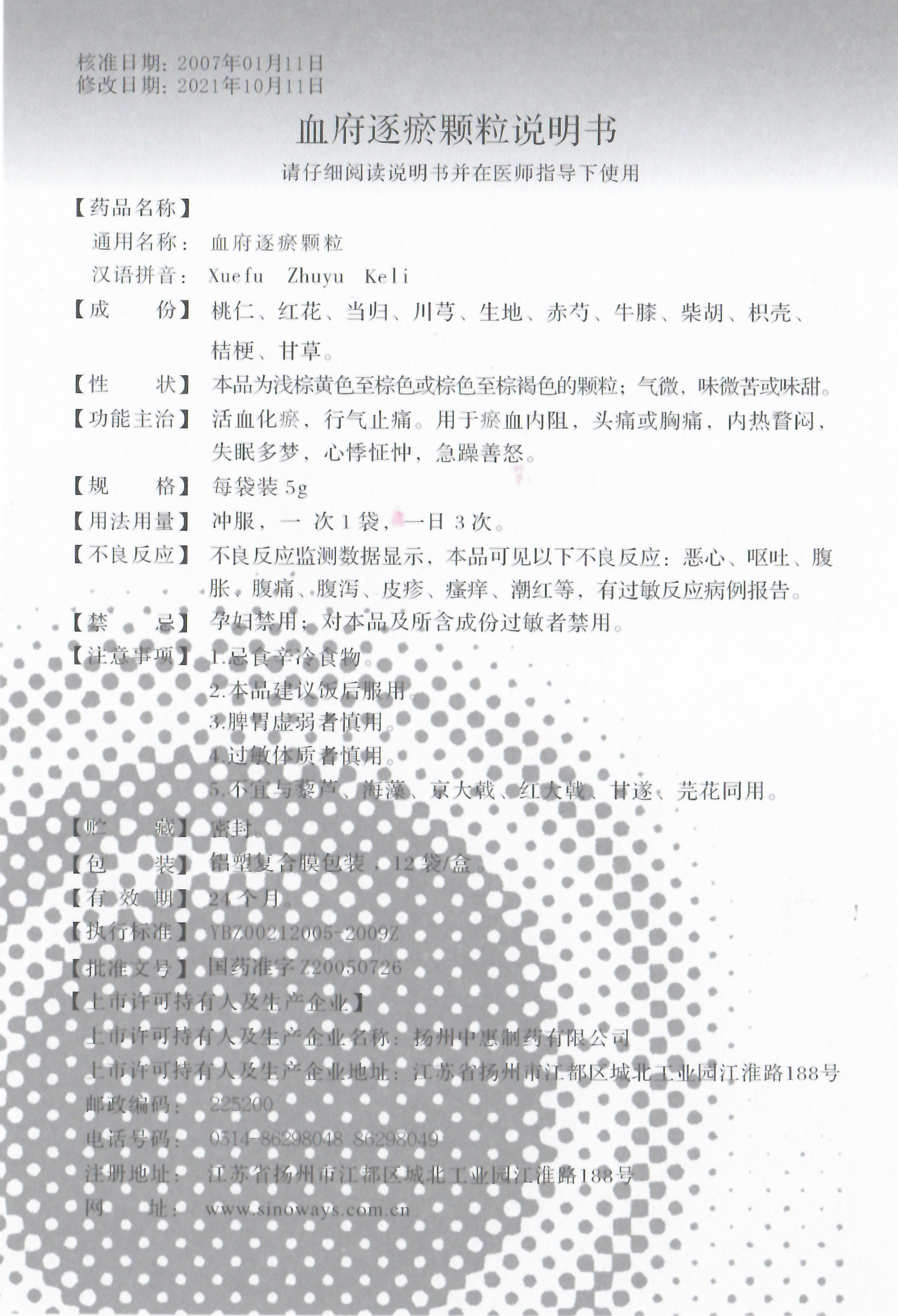 【藥品名稱】 通用名稱:血府逐瘀顆粒。