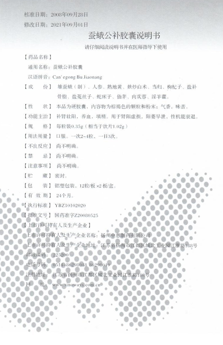 【藥品名稱】 通用名稱:蠶蛾公補(bǔ)膠囊。